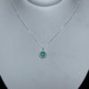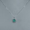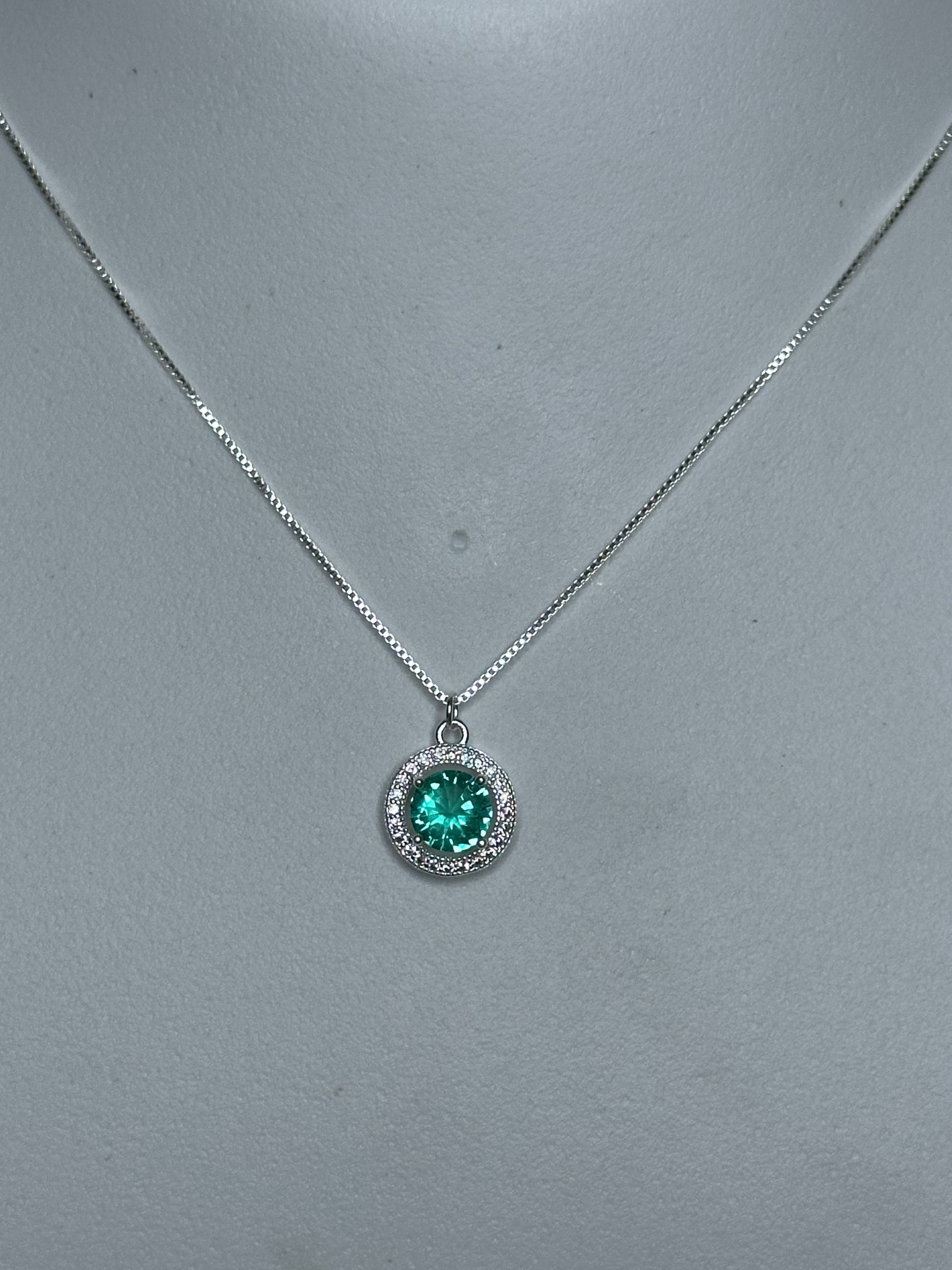 Este colar sofisticado é perfeito para quem busca elegância com um toque de cor. O pingente redondo apresenta uma deslumbrante pedra central verde, cercada por um aro de zircônias brilhantes, trazendo um charme clássico e atemporal à peça.