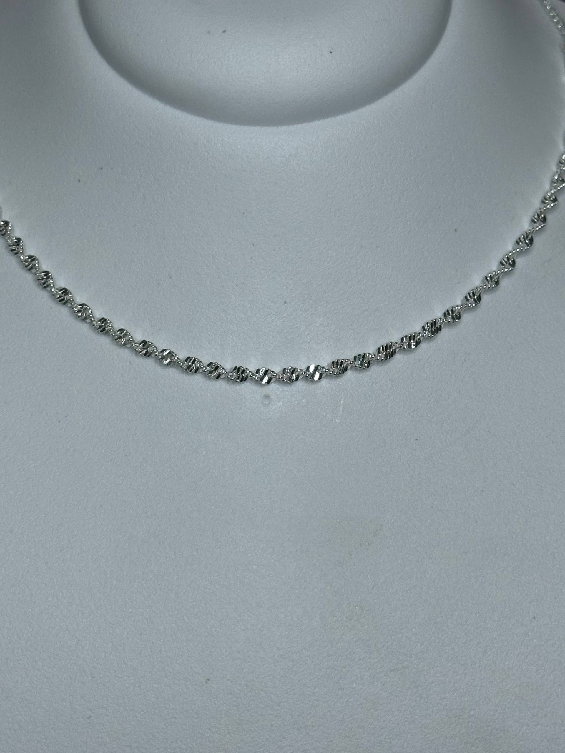 Colar folheado a prata com design torcido. Um modelo clássico e elegante, ideal para quem busca sofisticação em cada detalhe