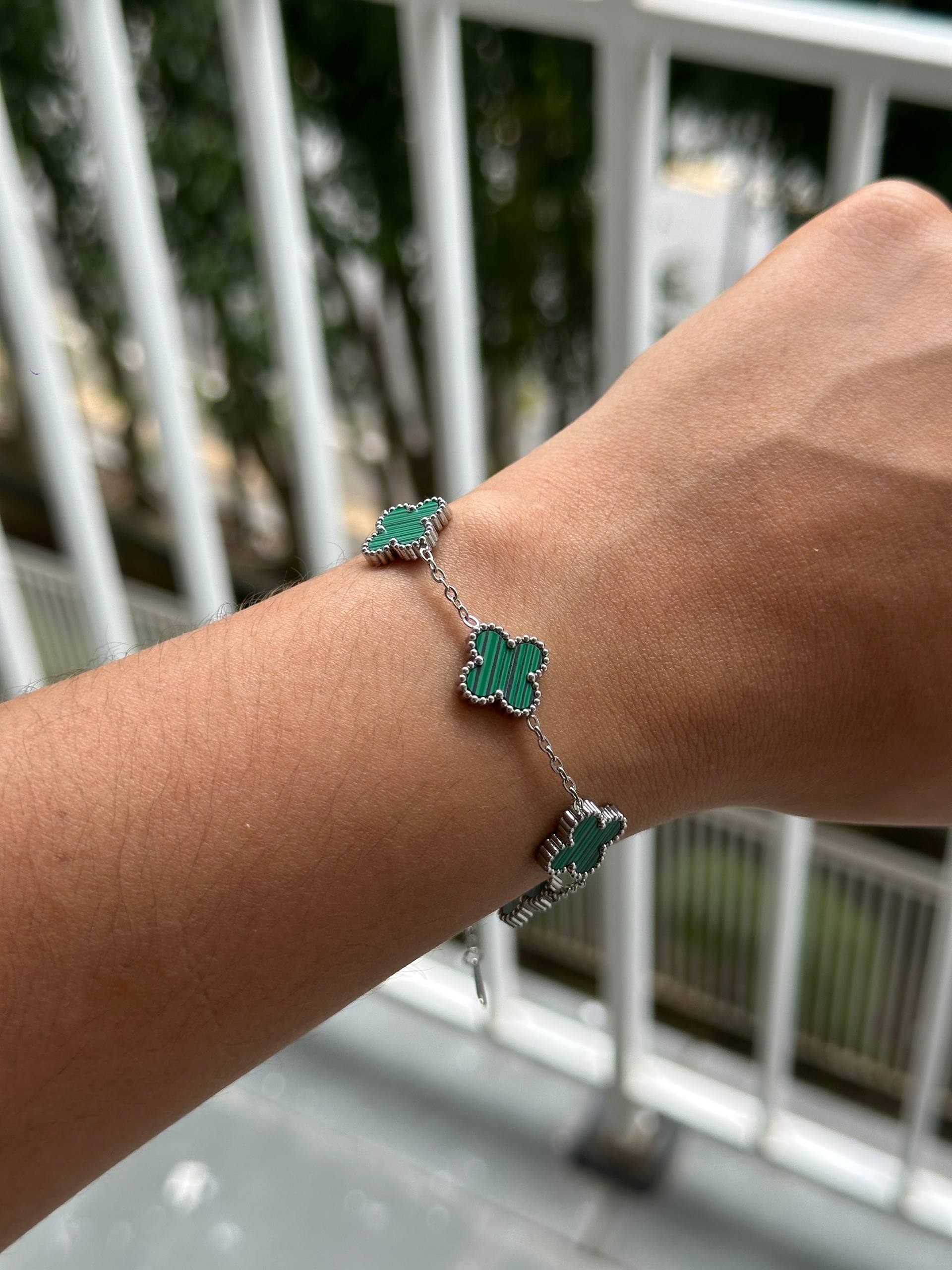 A Pulseira Trevo Esmeralda é a escolha ideal para quem busca elegância com um toque de cor e significado.