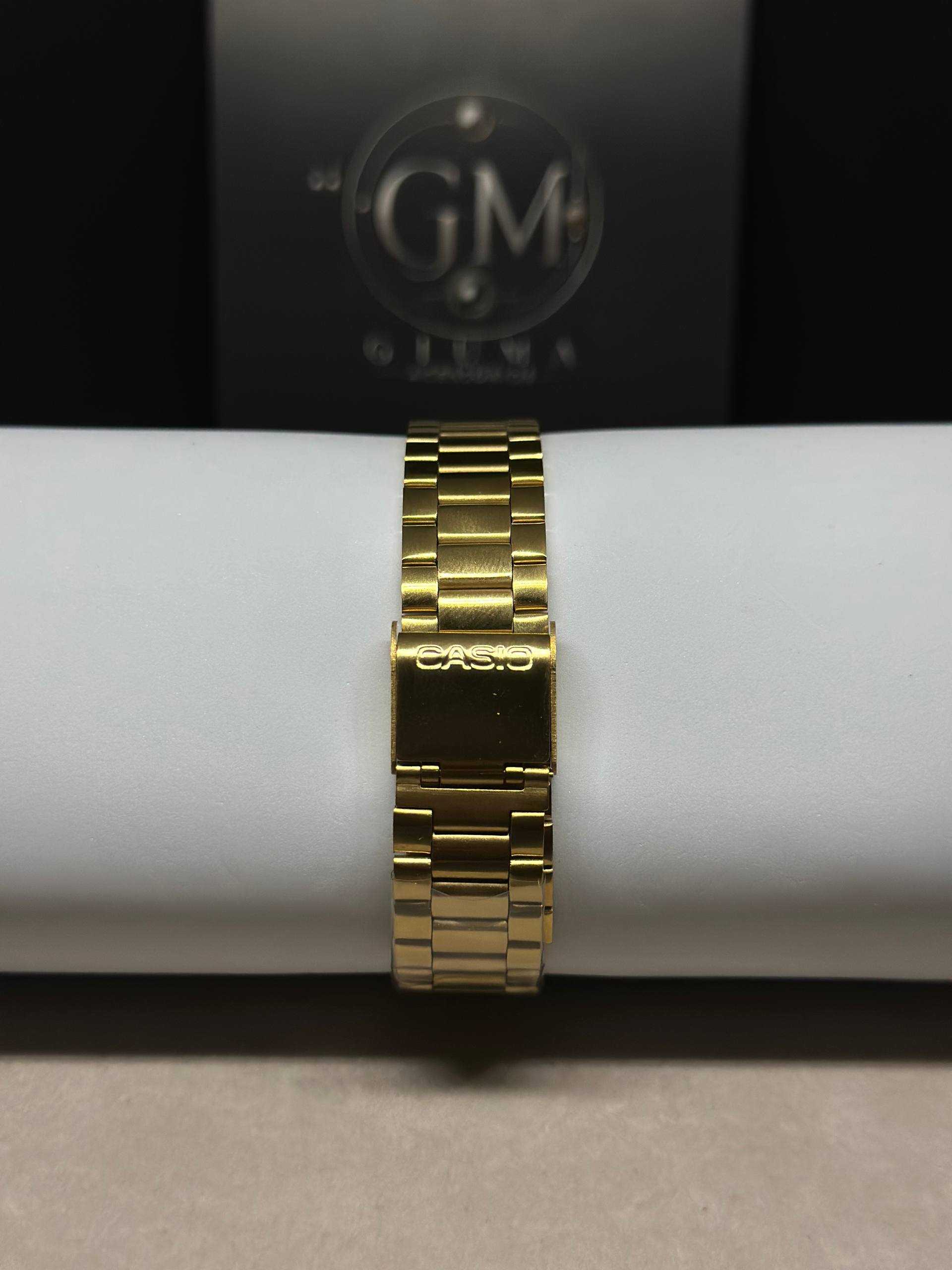 Clássico e sofisticado . Este modelo Casio A180 une elegância e praticidade, com pulseira em aço inox dourado e mostrador clean que valoriza cada detalhe. Equipado com calendário, é a escolha perfeita para quem busca estilo e funcionalidade no dia a dia ou em ocasiões especiais.