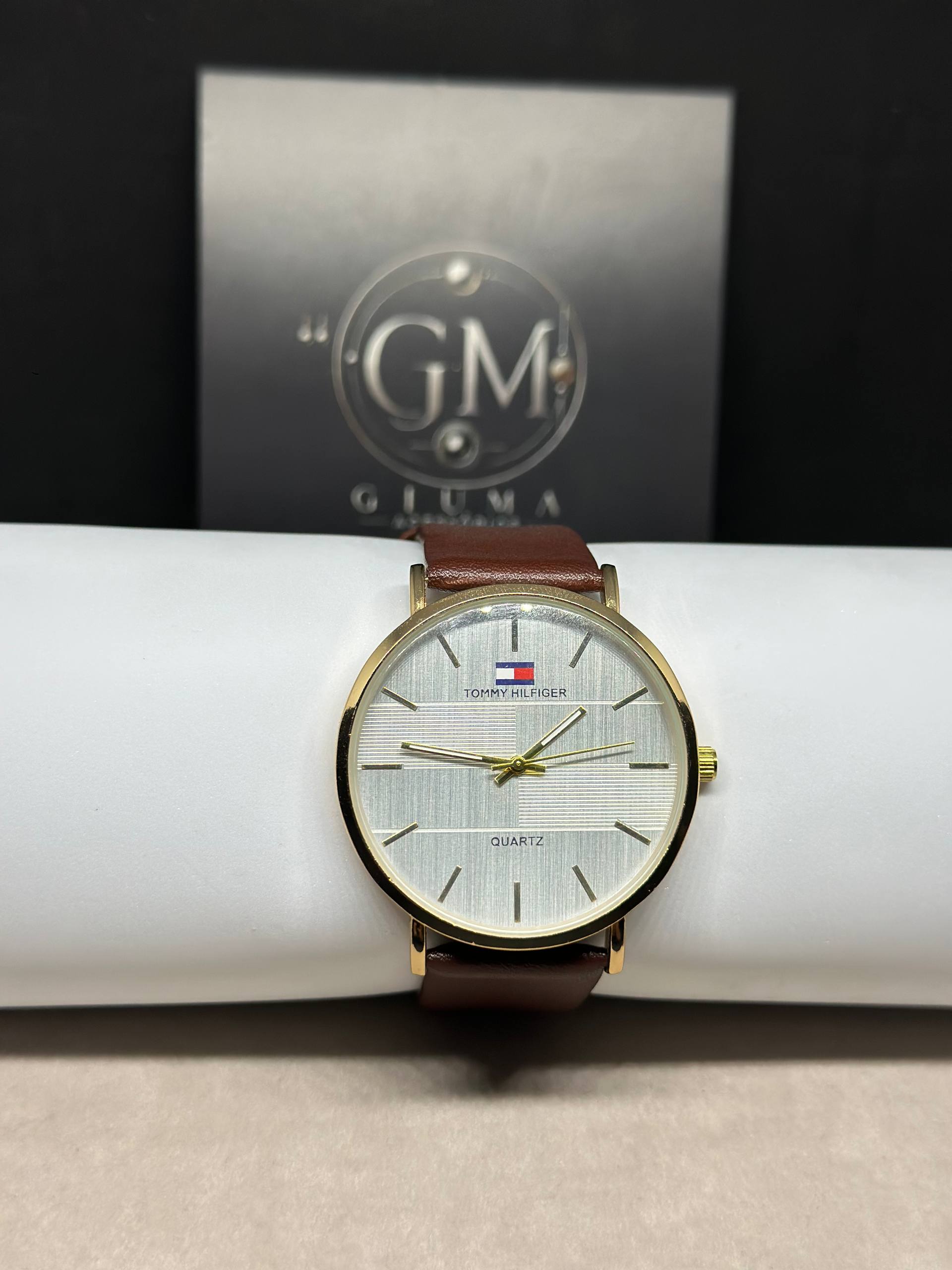 Um relógio que une sofisticação e estilo clássico. Com caixa dourada e mostrador prateado minimalista, esse modelo transmite elegância em cada detalhe. A pulseira em couro marrom oferece conforto e versatilidade, combinando perfeitamente tanto para uso casual quanto formal.